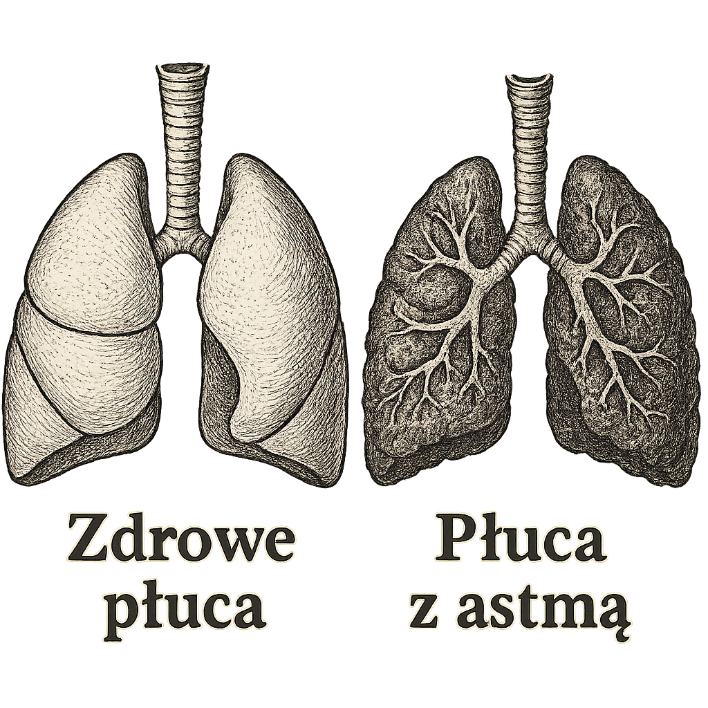 • Astma oskrzelowa to choroba zapalna dróg oddechowych, często o podłożu alergicznym. Objawia się napadami duszności, świszczącym oddechem i kaszlem, szczególnie nocą.